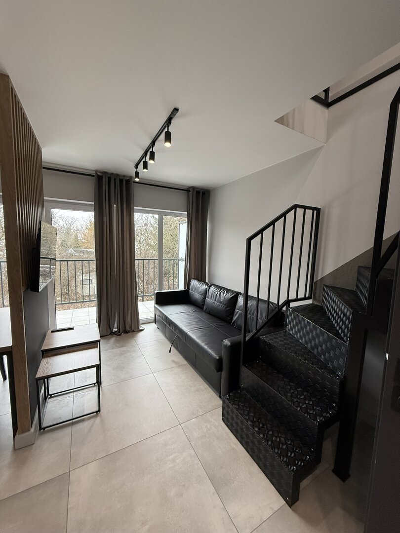 Beautifully decorated loft-style apartment with a mezzanine designed for 2-4 people. The apartment is ideal for both business and tourist arrivals. The apartment has a double bed on the mezzanine, a double sofa bed, a dining/living area with table and